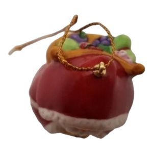 Pere Noel Ornament Figurine Ceramic Santa Father Cloak Woven Basket Christmas