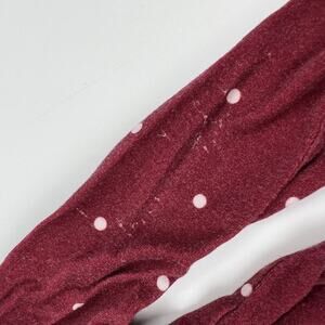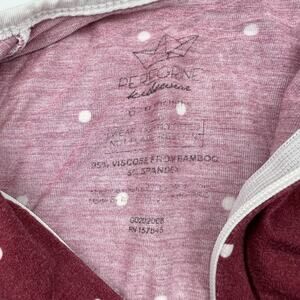 Peregrine one piece zip up Footie pajamas made of the softest lightweight bamboo. Size 6/12m, have fold over hands. Maroon with white dots. Play condition due to wash wear/fade, some pulled threads, print on foot part has faded off, see all photos.