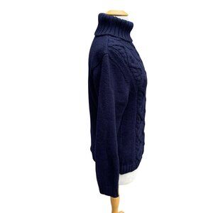 Peregrine England 100% Pure New Wool Made In England Cable Knit Sweater Sz M Navy Blue Fisherman Turtleneck