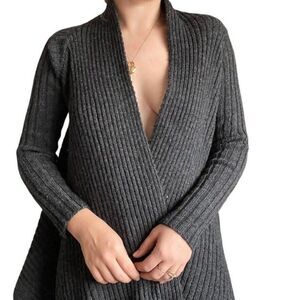 Peregrine Womens Charcoal Gray 100% Wool Chunky Ribbed Oversized Cardigan Sz S