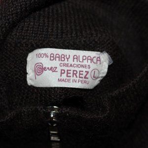 Perez baby alpaca Brown Pzip up sweater rint Hand Knit Pullover Size:L