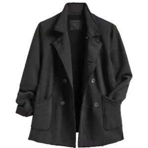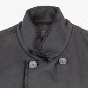 Perfect $365 Frank and Fileen Belfast Triple Fleece sweatshirt peacoat womens Slove love loveperfect pre owned condition. minimal wear blacwomen's size Small SrawhemsHeavy sweatshirt cottondouble breasted collarraw hemspocketsmeasured laying flat across the frontshoulder to shoulder:17"pit to pit:20"length:27"sleeve:23"Perfect $365 Frank and Fileen Belfast Triple Fleece sweatshirt peacoat womens S