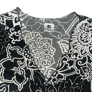 Get ready to hit the town with this stunning multicolor 90s themed blouse! The midriff cut and 3/4 sleeves make it the perfect top for a night out. This pre-owned blouse comes in a women's size M and is made for a regular fit. The beautiful floral design adds a touch of elegance to this Y2K piece, making it a must-have for any fashion-forward woman's wardrobe. So, why not treat yourself to this stylish blouse and turn heads on your next night out?