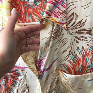 Love this blouse! It's perfect for spring. It's silk and I've worn it with white bottoms. It's just not fitting me anymore.