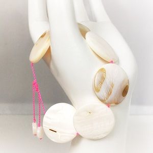 🐚🌴🌅Adorable Summer Bracelet, made from perfect Seashell disks. Hand knotted using neon Pink cord for that extra pop of color.