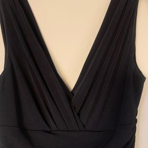Stylish fun comfortable and VERY flattering. Gathered material in chest area, across abdomen and layered at the bottom. Could wear to wedding or a night on the town! Black - Size 8