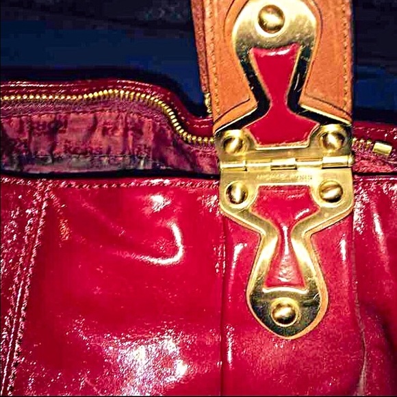 Deep Red, Patent Leather Handbag with leather handles and gold hardware. Like new condition; clean, no dust, smell or stains. Gorgeous.