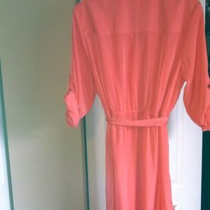 NWOT size L button down shirt dress in coral. Beautiful soft, romantic fabric. Knee length, perfect for spring or summer weather, very light.