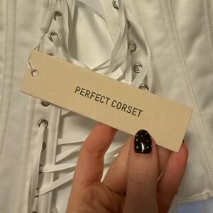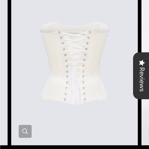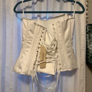 Sleek strapless corset top in clean white. Structured fit with subtle boning. Elegant minimal silhouette. Perfect for dressing up or layering.