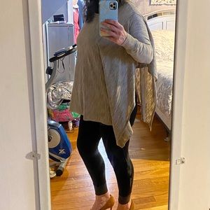 Beautiful poncho with fitted sleeves for a more put together look. The look of a poncho, but it functions like a sweater. Tan in color so it goes with everything. Dress it up or down. Bohemian look more your style? Whatever you decide, this poncho will be the focal point of any outfit. You can bundle up or dress light. Extremely versatile!