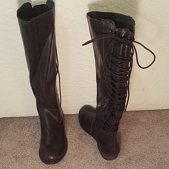 These super cute lace up fall boots have never been worn! The lacing up the back lets you choose how tight or loose you want or need the calf! I love these boots!