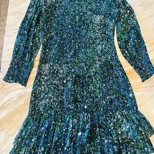Veronica Beard's Farha dress is crafted of cotton and boasts a smocked drop-waist design. This long-sleeve style is complete with ruffled trim and a vintage floral print.
