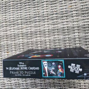 Disney Tim Burton's The Nightmare Before Christmas 3D Puzzle 500 pieces Brand New! Product details: Tim Burton's The Nightmare Before Christmas Jack Skellington and Sally Prime 3D 500 Pieces Puzzle Disney, Tim Burton's, The Nightmare Before Christmas. This puzzle is 24" x 18" when completed. A magnificent collectible to enjoy with the family. This 500 piece puzzle features an image from Disney, Tim Burton's, The Nightmare Before Christmas. The Nightmare Before Christmas Prime 3D Jigsaw Puzzle 500 Pieces featuring Jack Skellington and Sally. FUN ACTIVITY - Completing a puzzle is a great collaborative activity for family & friends. Kids and adults of all ages can exercise their patience, concentration, observation and intelligence. Each time a puzzle is complete, they will gain a sense of accomplishment. Those needing a little help can look at the back of the puzzle to get hints to find the right pieces. 500 PIECES - Jigsaw puzzle is 24 X 18 in Each piece is unique & fits precisely and is made of high quality cardboard. 500 Pieces Puzzle is a great gift to introduce toddlers and children to the world of Jig Saw Puzzles. PREMIUM QUALITY - Full color glossy varnish finish on front with white finish on back. Each unique piece is made from high quality recycled cardboard & fits precisely. Puzzles are a fun activity to do on a cold fall, rainy or winter day, and make a great gift for Birthdays, Christmas and over the entire holiday season.