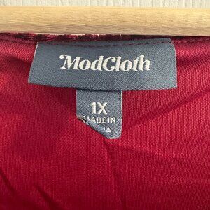 ModCloth Timeless Embrace Burgundy Ribbed Velvet Midi Dress in 1X