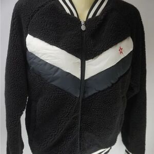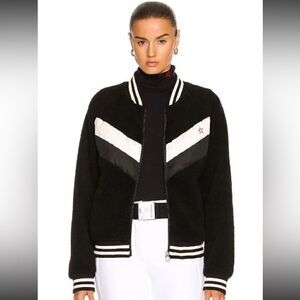 Perfect Moment Fleece Sherpa Bomber Jacket Chevron Black White Grey NWT XS