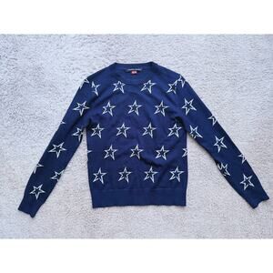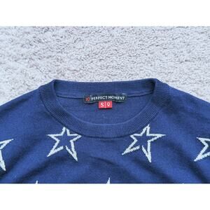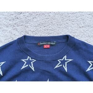Perfect Moment Navy Blue Merino Wool Sweater Graphic Gold Stars Small Statement