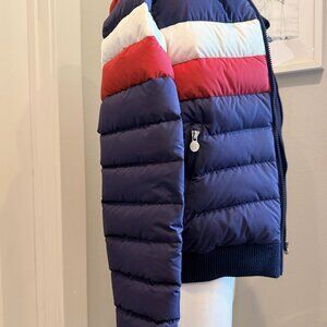 Full-front zip closure, side on-seam zip pockets, ribbed waistband and cuffs, internal smartphone pocket and headphone system, internal goggle pocket and cloth cleaner, built-in powder skirt, 700-fill-power down insulation, and fully lined.