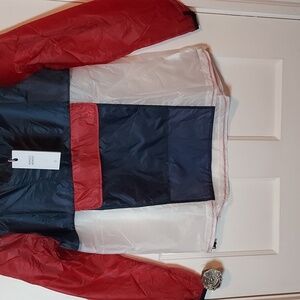 front pouch pocket and a drawstring hem. Super lightweight