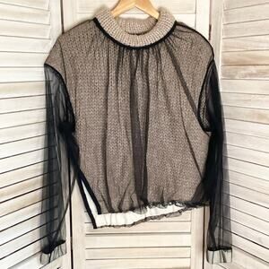 Perfect Number Fall 2020 RARE Sheer Overlay Chunky Knit Cropped Sweater S