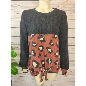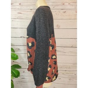 Perfect Peach Gray Brown Animal Print Pullover Sweater Women's Size Medium;