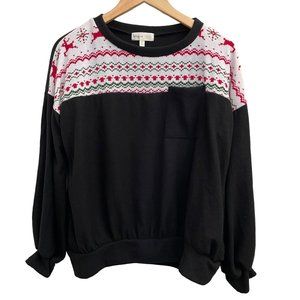 Perfect Peach Sweater Size S in Black with a Snowflake/Reindeer Pattern, NWOT