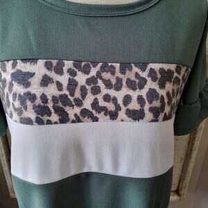 Size small leopard colorblock ruffle short dolman sleeves tee t-shirt top by Perfect Peach.