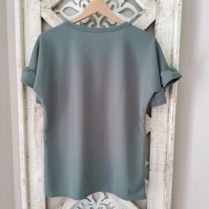 Style: Pullover, short sleeve, ruffle sleeve, dolman sleeve, crew neck, casual roomy fit