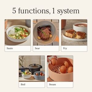 • 5-in-1 Multifunctionality: Sear, Saute, Fry, Boil, Steam