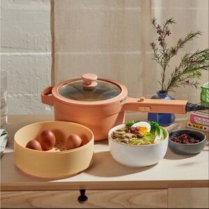 • Cook multiple things at once with the nesting steamer, which also features five divots for keeping eggs in place