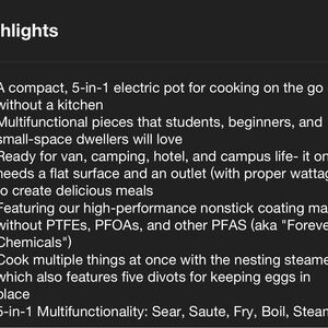 • A compact, 5-in-1 electric pot for cooking on the go or without a kitchen