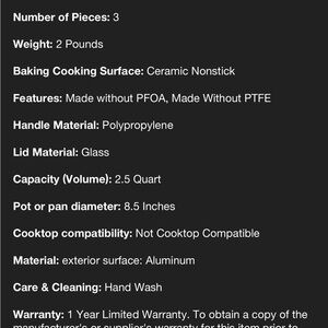 Pot or pan diameter: 8.5 Inches