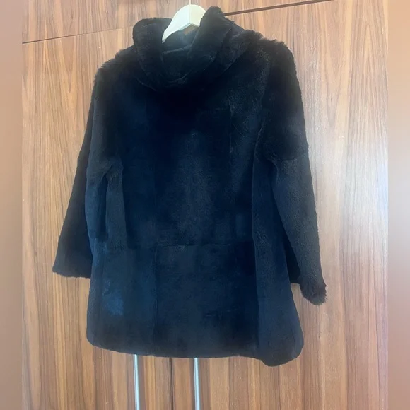 Pullover genuine rabbit fur. I can not remember the designer, but it is not vintage, and is in great shape. So chic and cool, while keeping you warm! Cowl neck is so flattering.