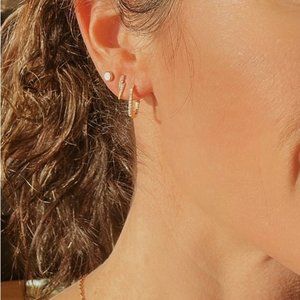 Perfect SIMPLE Dainty Rectangular Pave Huggies High Quality Sterling Silver Gold