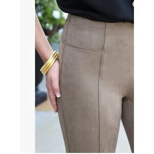 Perfect SPANX Faux Suede High Waisted LEGGINGs Camel Taupe Tan Brown Size M New