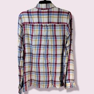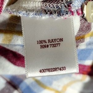 Perfect Shirt Women's XL Multi-color Plaid Rayon Button Down Top Blouse USED