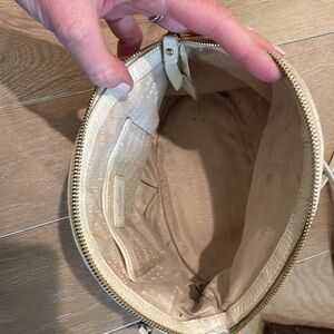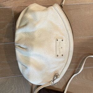 Adorable light cream Kate Spade purse. Fits a surprisingly good amount of stuff for its size. Strap can be cross body or long on shoulder. Good used condition.