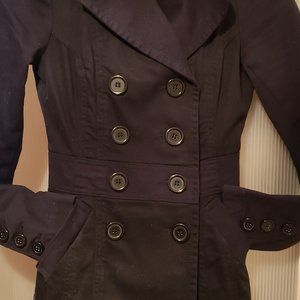 Perfect black spring/fall jacket to wear with jeans. Made very well. Nice button detail on sleeves. Tailored look.