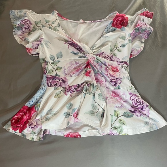 Get ready for spring with this blouse! It features beautiful pastel flowers against a light background. The material is super soft and comfy. Dress it up or down, either way, this will look great on you!!