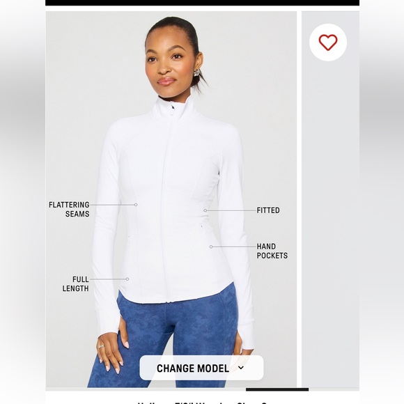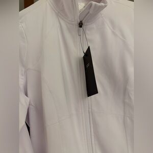 Stylish white fitted jacket with flattering seams and hand pockets. Perfect for workouts.