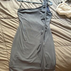 Long flowy ruffled accent, runs from the shoulder to the hem