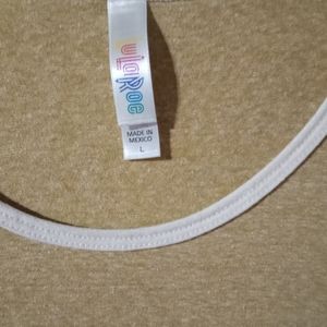 perfect T, never worn, yellow heathered color with tan bands around sleeves and collar, size L