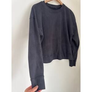 Perfect White Tee Tyler Cotton Crewneck Sweatshirt in Vintage Black-Size S