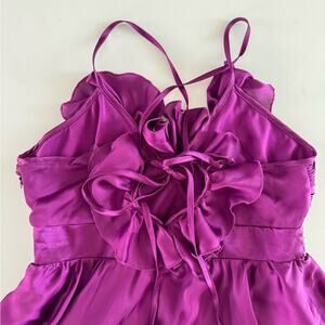 The perfect y2k flow top. Ruffles and beadwork. Some imperfections/discoloration, pictured. Approximately 16.5” pit to pit with adjustable straps and a zipper closure. Vintage forever 21