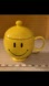 Bright yellow mug with a smiley face design. Comes with a matching lid. Perfect Condition. Measurements are in pics. Perfect for floral arrangements and comes with the lid holder for an arrangement. Would work great as a pen holder or anything! It will add happiness to your environment!