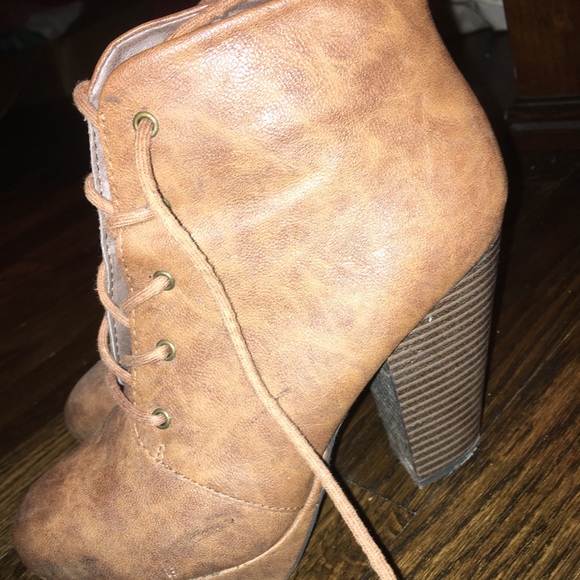 The perfect fall booties! The best accessory to dress up an outfit is shoes! These are brown with a good heal and they tie up the front!