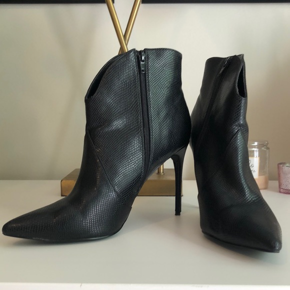 Worn once black Lulu’s high heel booties. Vegan leather