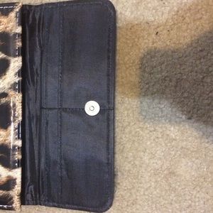 Perfect for a night out! Has four card holders, two separate pockets for money, Bobby pins, etc, and a zipper pocket. In perfect condition.