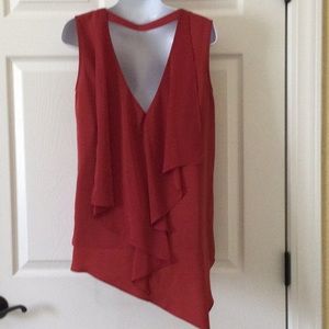 Light and breezy tank. I listed as a med because that is how it fits (too lg for me) even though the tag says small. The front of the top is lined for modesty.