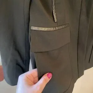 Fabric: 96% wool, 4% spandex, leather accents