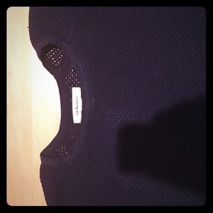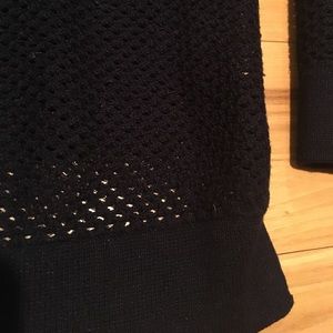 G. H. Bass & Co. open knit crochet mesh sweater. Upgrade a basic black sweater with subtle texture for chic fall layering. Navy, looks black. Viscose/poly, some stretch, runs large. Oversize fit on listed size (XS), close fit on size S. EUC.